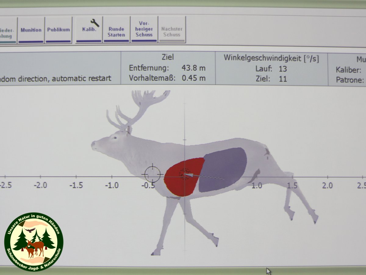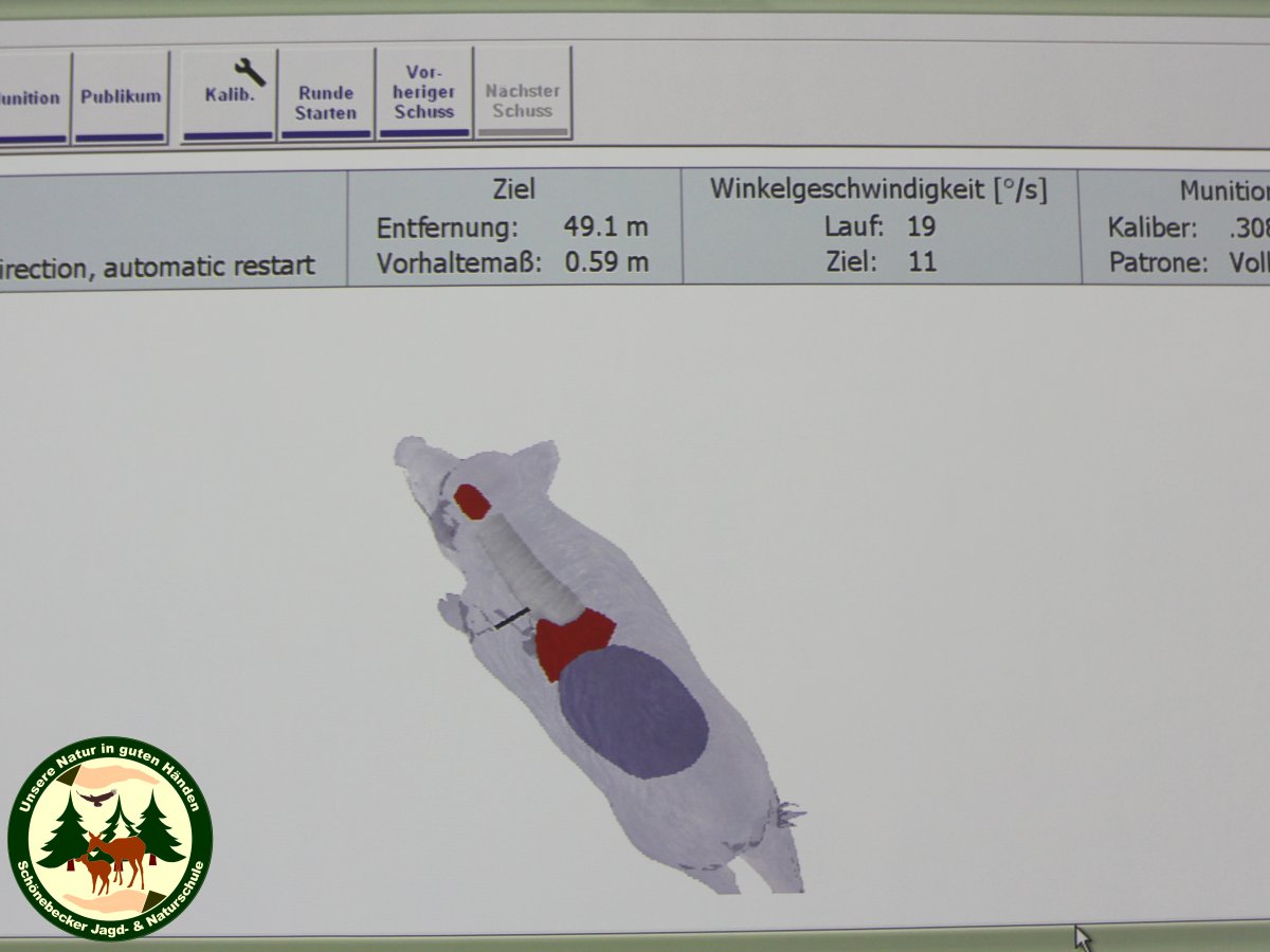 - Beim Schießen mit der Flinte wird die Wirkung der Schrote berechnet und danach die Wahrscheinlichkeit eines ausreichenden Treffers angezeigt. Schießen Sie mit der Büchse, werden zur Bewertung der Treffpunktlage und Wirkung des Geschosses im Wildkörper verschiedene Parameter ausgewertet – z.B. verwendete Munition (Kaliber und Geschoss), Eintreffwinkel, etc.
