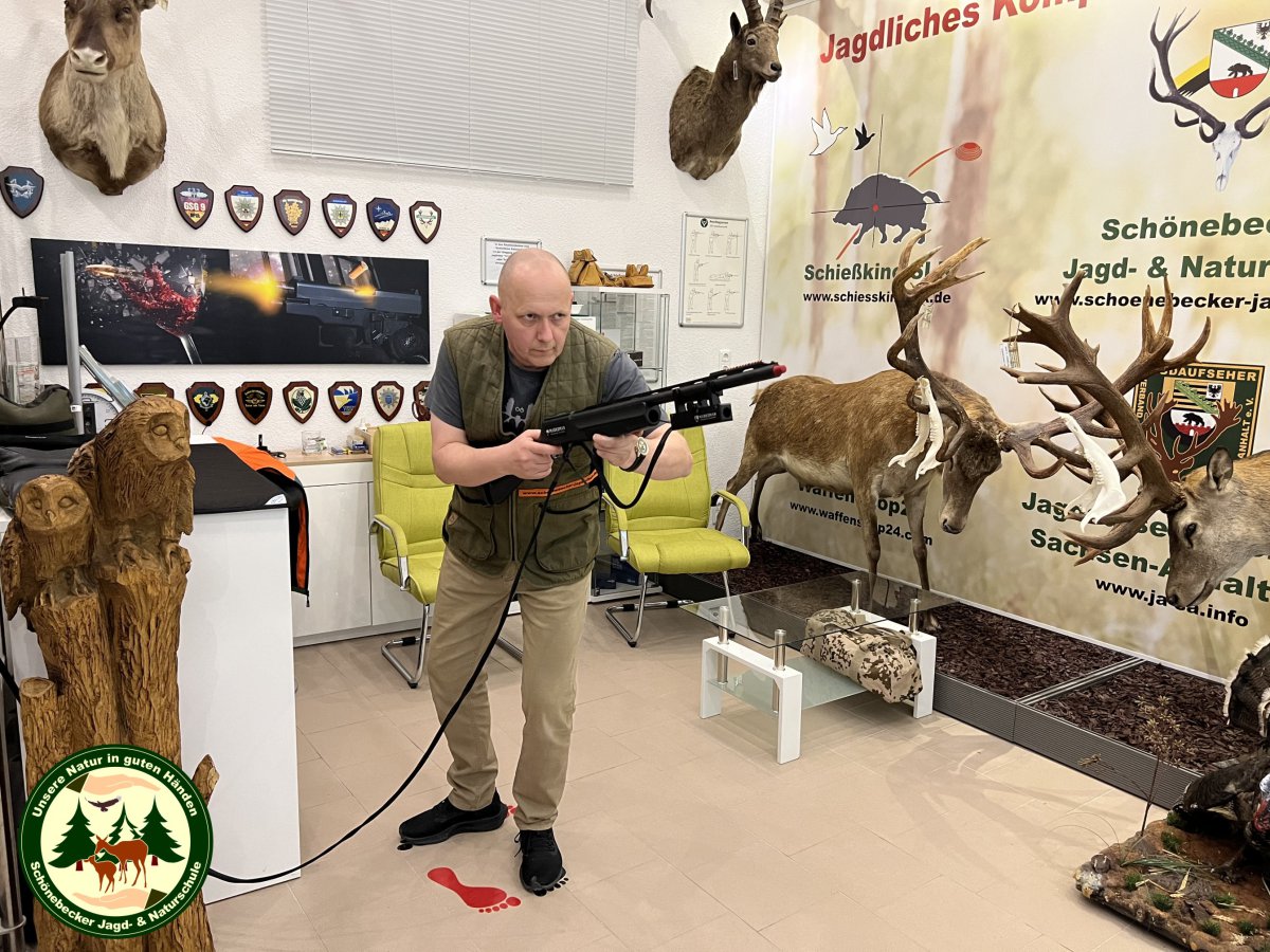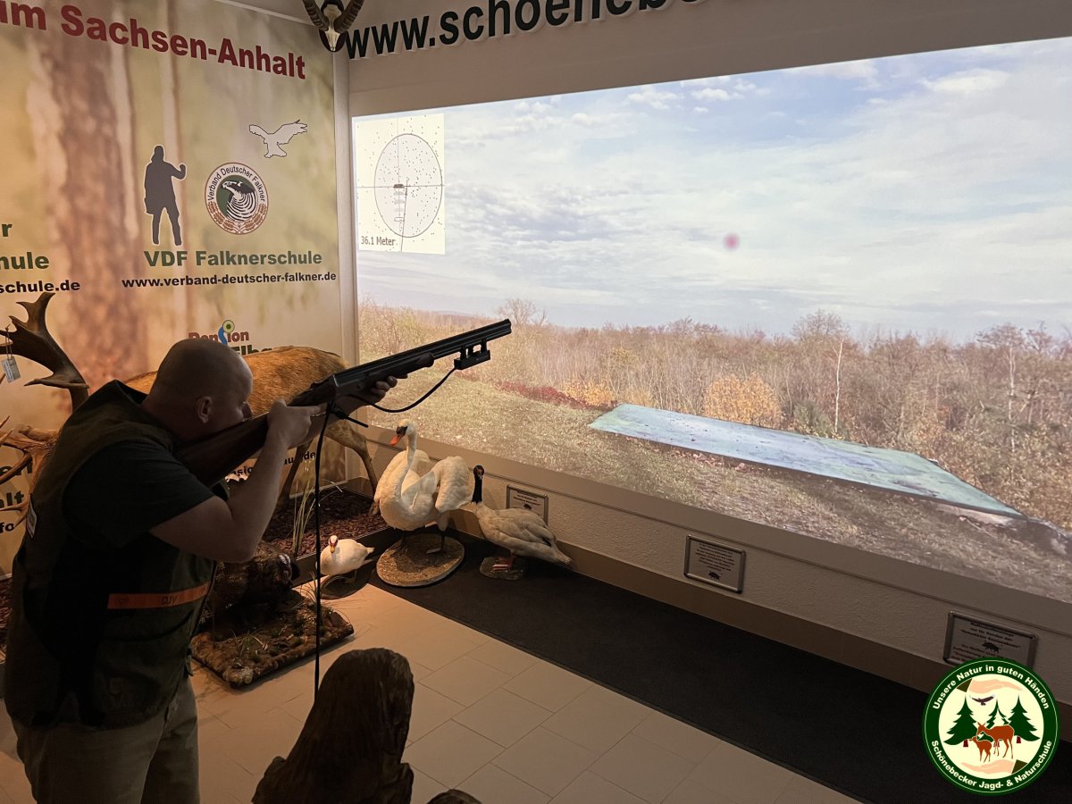 - Sie können das Schießen mit Flinte und Büchse auf Tontauben, Scheiben und 3D-animierte Szenarien in Echtzeit trainieren (z. B. Jagd auf Enten, Hühner, Hasen, Fasane, Bär, Elch, Rothirsch, Sauen oder Reh).
